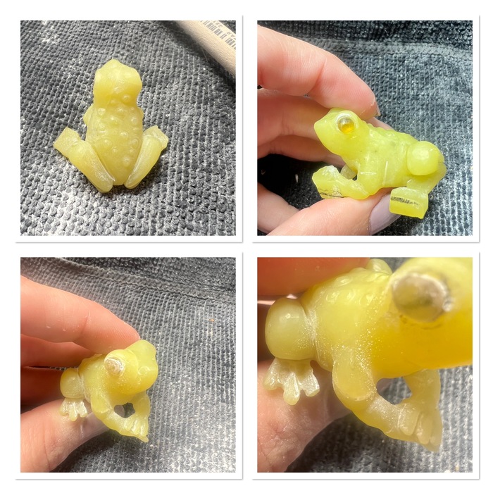 Ну вот тут уже без вариантов - пришло время работать борами и придавать камню лягушкообразную форму. Формирую спинку, профиль, лапки и намечаю глаза
