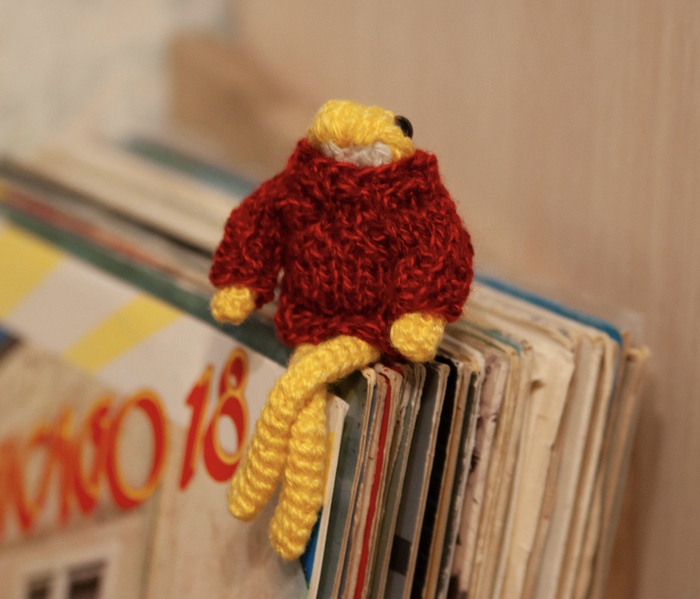 Как всегда связан в смешанной технике. Каркас через всё тело и очень хорошо гнётся. Свитер из натуральной шерсти, снимается. Глазки на безопасном креплении. Такой малыш уселся на виниле и ждёт хорошую компанию).