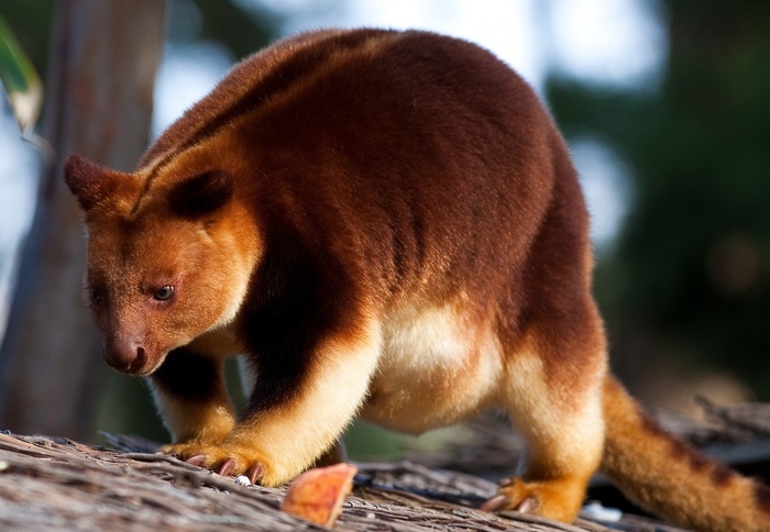 Поэтому после захода солнца древесные кенгуру ловко спрыгивают с дерева на землю, и отправляются на ночную прогулку в поисках земной пищи.