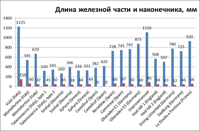 Если подытожить, то выходит весьма впечатляющее оружие – длиной 2,7 метра, наполовину состоящее из металлической части. Надо сказать, что как такового единообразия в размера пилумов не было – по описанию Вегеция пилум был 1,8 м (железная часть 216 мм), Дионисий Галикарнасский, как и Ливий давали размер 888 мм только для железной части. При этом если обратиться к археологическим находками, то разлет железных частей пилумов примерно укладывается в данные античных источников, составляя диапазон от 270 мм до 1225 мм.