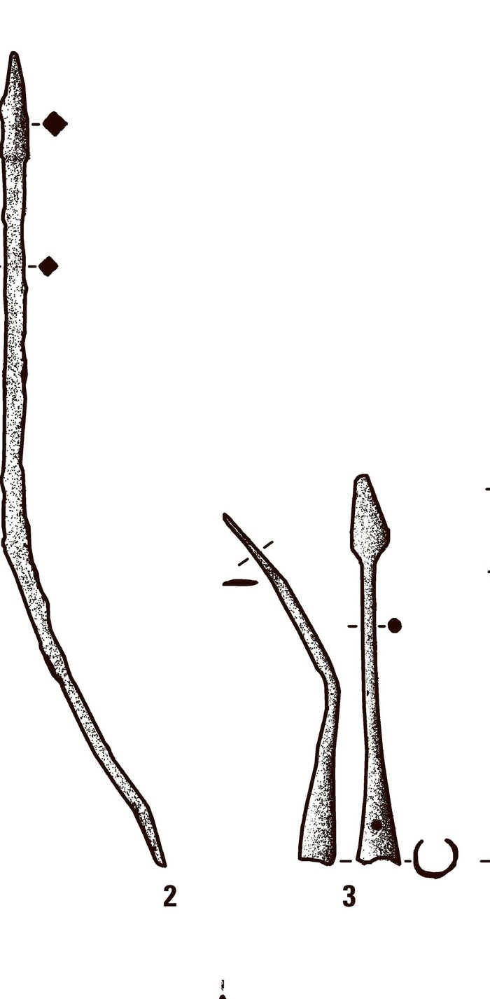 Кроме того, существует ряд находок наконечников пилумов, которые имеют характерный изгиб: