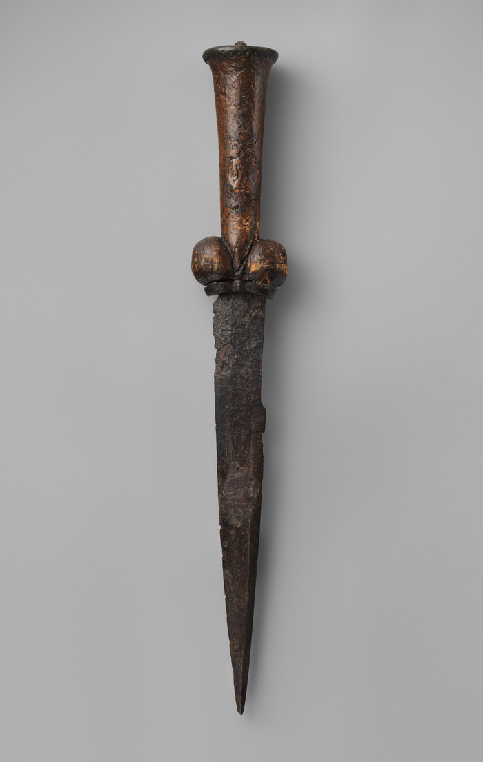 Кинжал "баллок", конец 14 века, Франция. Материал: сталь, дерево. Размеры: общая длина (37,9 см); длина клинка (24 см); ширина клинка (2,9 см); наибольшая толщина клинка (0,6 см); Вес (170,1 г)