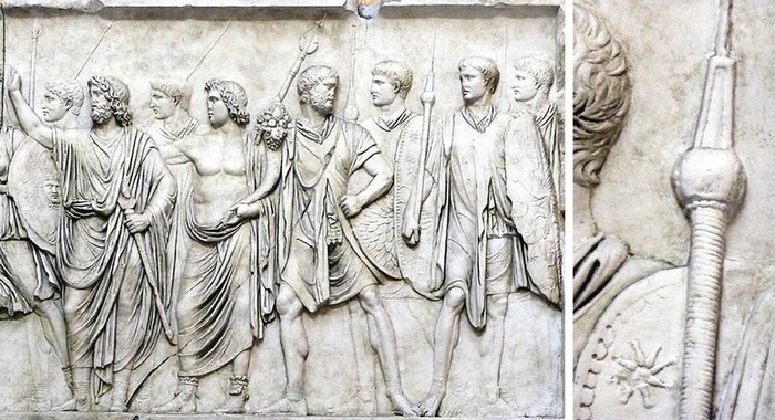 Изображения преторианцев на рельефе Канчеллерии (83 г. н.э.), приводится по Bishop M. C. The Pilum: The Roman Heavy Javelin. – Bloomsbury Publishing, 2017. – Т. 55. С. 20