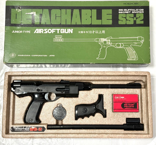 В середине-конце 70-х в Японии потихоньку зарождается популярность развлечения, дополняющего пострелушки из воздушки на заднем дворе. Юные японцы догадались, что из пневматики можно стрелять друг по другу. Позже это перерастёт в страйкбол, в игру вступят компании Tokyo Marui и Marushin, а там и китайцы подтянутся, но до этого момента оставалось ещё лет пятнадцать, а вот тогда своё слово сказала Masudaya - и выпустила пневматическое ружьё калибром 7 мм под названием Detachable Buffalo SS (Secret Sniper) Rifle.