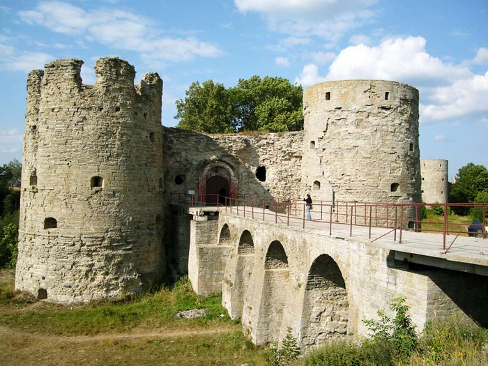 Это памятник средневекового оборонного зодчества (Ленинградская область), заложенная в 1237 (по др. данным 1240) году ливонскими рыцарями и вскоре отвоеванная Александром Невским. Каменная твердыня, перестроенная новгородцами в XIII–XV вв., стоит на скальном мысе, окружена оврагами и имеет стены толщиной до 5 метров.