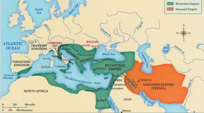 Крупнейшие империи 7 века, Византия и Персия рубились почти 30 лет и совершенно истощили свои силы. Как результат, арабский проповедник Мохаммед с войском кочевников покоряют Персию, которая отражала полчища Рима но протяжении 7 веков. Арабы почти целиком захватывают и Византию, а Константинополь чудом удается отстоять после нескольких лет осады.