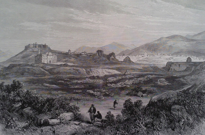Изображение Аясолука после 1870 г. (после раскопок Д.Вуда). На переднем плане котлован, где находился храм Артемиды