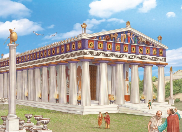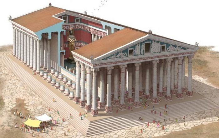 По описаниям античных авторов нам известно, что и без того величественный храм украшали скульптуры и барельефы, созданные мастерами тех времен, художественные полотна и, конечно, 15-метровая статуя самой богини охоты, созданная из черного дерева и слоновой кости, украшенная золотыми пластинами и драгоценными камнями. Согласитесь, навряд ли громадные средства, вложенные в этот проект, были бы выделены, если бы будущее сооружение стало бы исключительно местом религиозного почитания, потому дом Афродиты также стал политическим и культурным центром города. Здесь читали лекции, проводили переговоры, заключали сделки и хранили деньги. Однако продолжалось все это недолго - спустя почти двести лет с момента своего основания храм был уничтожен руками Герострата - остались лишь колонны и свод над ними.