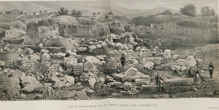 «В последний день 1869 года мраморные плиты храма, так долго потерянные и так долго искомые были, наконец, действительно найдены на глубине почти двадцать футов ниже поверхности земли..Волнение, вызванное этим открытием и тяжелый труд, которому я тогда подвергался, стали серьезным испытанием для моего здоровья. В тот день я писал с 9 утра до полуночи и в течение трех недель каждую ночь меня мучала лихорадка. Однако я не сдался, а продолжал свою работу, не расслабляясь»