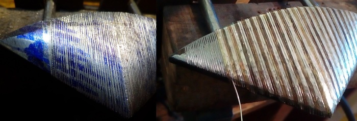 Получившуюся бяку ободрал на гриндере, и протравил для контроля рисунка.