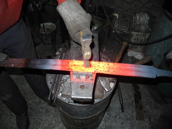 В общем мечта вспыхнула снова и тлела года до 17, когда я познакомился с кузнецом. Кузнец был малоизвестен среди реконструкторов, да чего говорить, вообще неизвестен, хотя как по мне, массового выходившие из под его молота фальшионы, были очень неплохи, он так же успешно провел цикл от добычи болотной руды, обогащения ее, выплавки крицы и ковки и науглероживание изделия. Не то что бы я не рассматривал кузнецов заточенных на длинноклинковое оружие, и известных, наоборот, я сразу обратился к нескольким известным мастерам, но чуть заикой не стал от их цеников. Они начинался от одной тысячи евро. Были еще пару с подмоченной репутацией, но к ним я не рискнул обращаться.