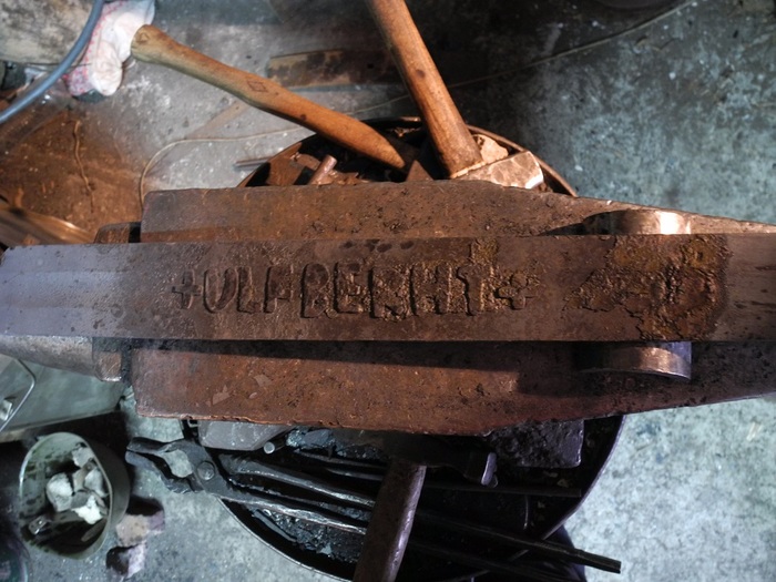 Сталь я решил взять У8. Честная углеродка, к тому же очень похожа по содержанию углерода на некоторые мечи с клеймом Ульфберт, но не таким как у меня +ULFBREHT+, а с крестом перед «Т» +ULFBREH+Т. Это выяснил еще старик Алан Уильямс, году в 78, когда проводил металлографические исследование мечей Эпохи Викингов, и предположили что мечи с клеймом с крестом перед «Т» +ULFBREH+Т или по крайней мере лезвия таких мечей, производились из высококачественной литой стали, ближневосточного или даже индийского производства. ц