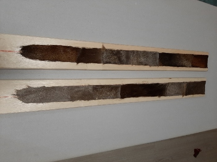 Всегда внутри имеется мех обращенный ворсом к клинку, я использовал то что было, а был у меня камус.
