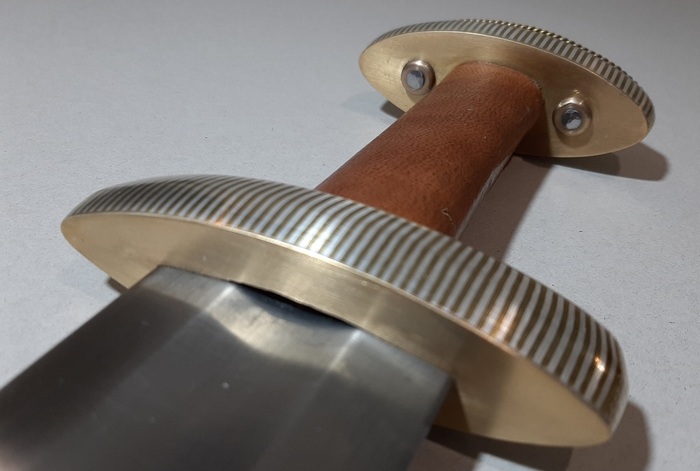 Собрал все в кучу, насадил перекрестие, насадил рукоять на черен, и сверху основание навершия.