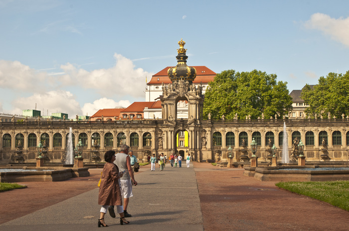 В 2002 году здание театра вновь пострадало из-за разлива реки Эльбы. После наводнения театр был отремонтирован и вновь открылся для посещений.Этот впечатляющий дворцово-парковый комплекс был построен в период с 1710 и по 1732 год. Он находится через дорогу от Дрезденского замка и состоит из шести потрясающих павильонов, соединенных галереями. Первоначально архитектурный комплекс использовался для проведения турниров и различных судебных мероприятий. Сегодня во дворце Цвингер размещается нескольких музеев, среди которых интересный музей с богатой коллекцией фарфора; а также оружейный музей, в экспозиции которого вы увидите немецкое церемониальное оружие, исторические доспехи и многое другое. Во дворце есть крыло, известное как галерея Зимпера, где посетители могут полюбоваться картинами великих старых мастеров, включая ван Дейка, Рубенса и Рафаэля. Одна из самых популярных и часто фотографируемых достопримечательностей Цвингера – Коронные ворота, архитектурный шедевр в стиле высокого итальянского барокко, так же как и прекрасный фонтан «Купальня нимф».