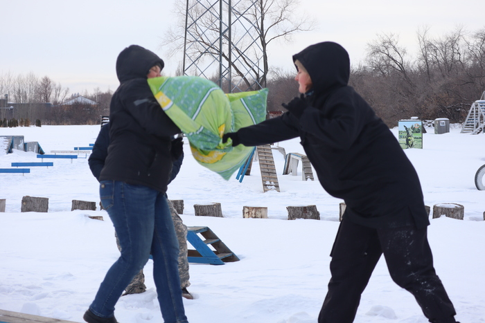 Для получения социального опыта выводим по двое щенков для общения с дедом и отцом) на видео две девочки и папка)