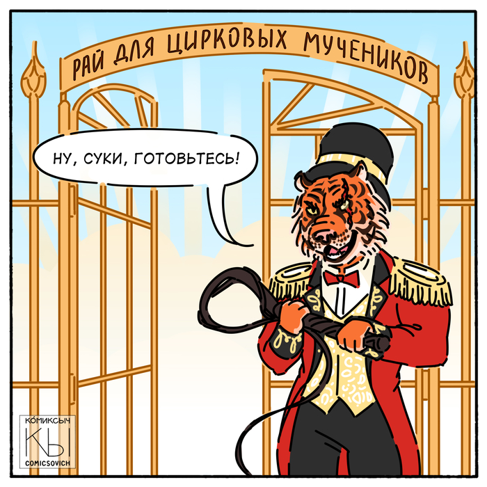 **когда мы опубликовали этот комикс в вк - некоторые не поняли посыл: он в том, что теперь Запашным, которые олицетворяют всех цирковых "дрессировщиков", воздастся за все их издевательства над животными