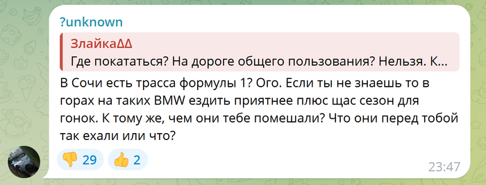 Сегодня вечером на дороге Дагомыс–Солохаул трое водителей «BMW» устроили дрифт-заезд. Машины повредили дорожную разметку и едва не столкнулись с белым автомобилем, двигавшимся во встречном направлении.
