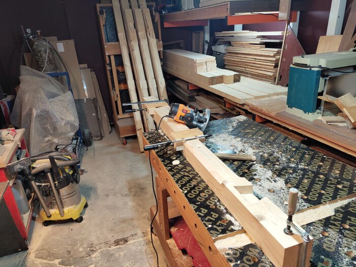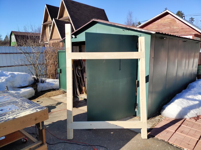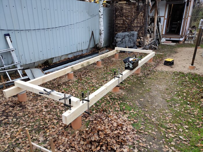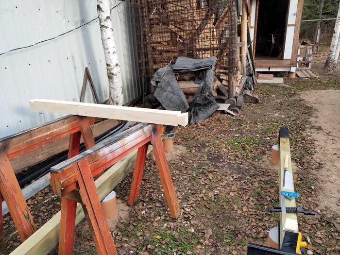 Зимой постепенно строгал и складировал здесь заготовки на будущий каркас дровника.