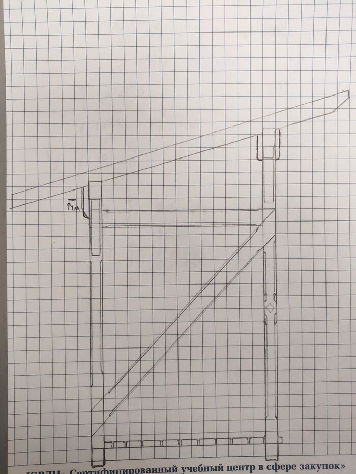 Ну вот и весна, не дожидаясь полного таяния снега начал ваять каркас. В дровнике три секции, разделенные четырьмя рамками, напомню, планировалось, что это будет выглядеть следующим образом: два столба с укосинами.