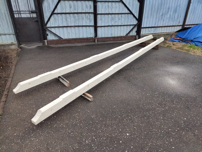 В оконцовке решил сделать фигурные вырезы с обеих сторон балок и поснимать фаски под 45 градусов, как и на основном каркасе: