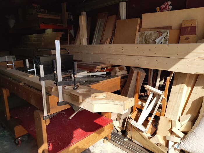 Так это всё складировалось в перерывах между работой. Мастерская маленькая, там складывать некуда.
