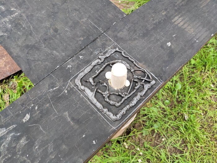 На такие шканты с тайтбондом и герметиком сажал основания столбов. Герметик для того, чтобы влага не затекала под столб и он не подсасывал ее торцом. Предварительно перед обжигом и покраской столбы ставил на часок - другой нижними концами в ёмкости с антисептиком - чтоб пропитались.