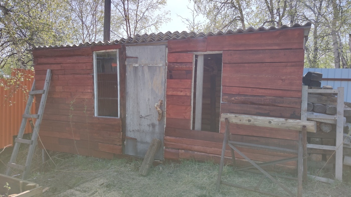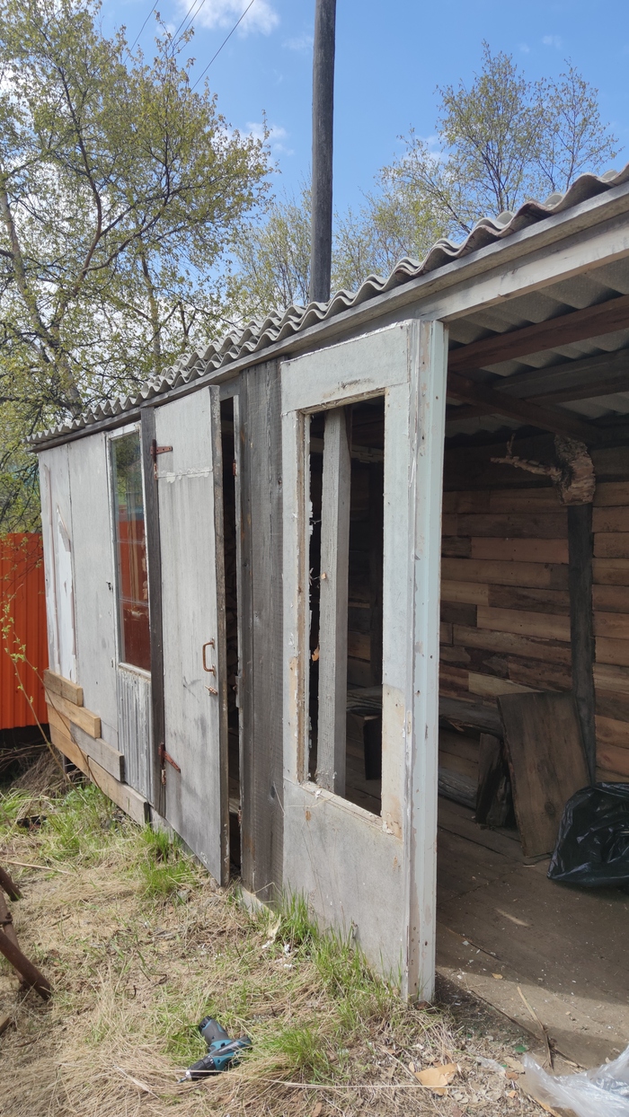 В первую очередь вытащил всё изнутри. Хлам в мусор, доски сложил перед домом.
