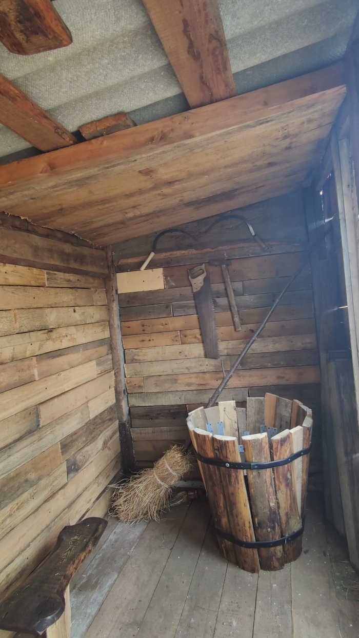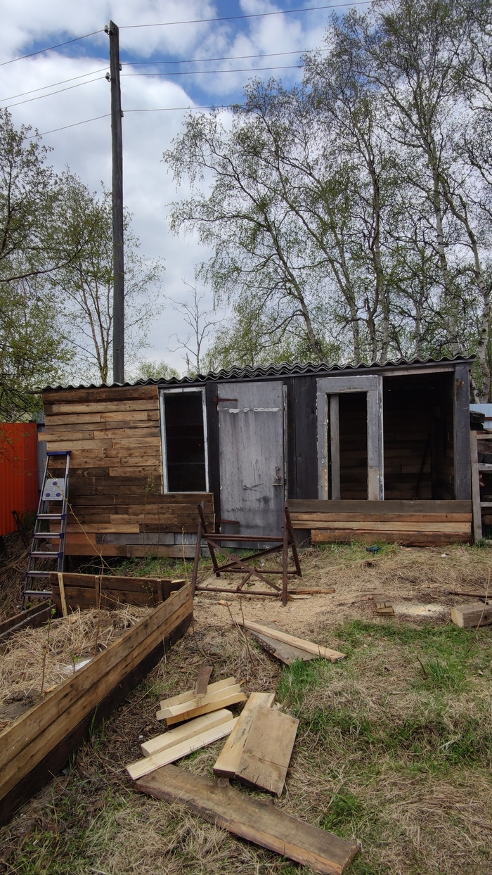 Навёл порядок внутри. Стены, как внешние, так и внутренние смотрелись совсем не очень. А досок очень много всяких разных.