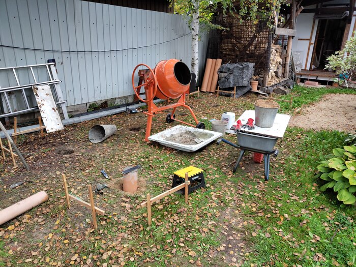 [моё] Дровник Дача Самострой Длиннопост Своими руками Сваи Фундамент Бетон Бетономешалка