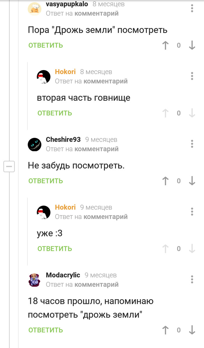 Простые работяги и закадычные друзья Вэл и Эрл решают навсегда покинуть крошечный город Перфекшн. Казалось бы, ничего не может их остановить, даже бесплатное пиво, но по пути они находят трупы людей, которых убили весьма странно. Дальше, по закону жанра происходит трэш. Огромные черви-монстры, способные быстро перемешаться в своей среде, они словно Земные акулы, начинают нападать на людей. И превращают маленький городок в свой шведский стол. Называть это кино хоррором было бы не правильно, да в фильме есть немного саспиенса и убийств, но он больше развлекательного характера. Представленные персонажи довольно картонные, у них нет проработанных историй, глубоких характеров, но это не мешает им быть харизматичными. Актеры подобранны просто замечательно. Техническая часть в виде огромных резиновых червей смотрятся, даже спустя столько лет, великолепно, нисколько не отталкивает и показывает энтузиазм старого кино.