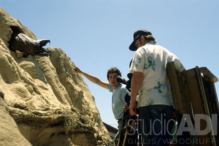 Монстр летел с небольшой высоты — существо было настолько тяжелым, что расстояния в 12 футов(3,5 м) было достаточно, чтобы оно разбилось. Самая большая проблема — то, что грабоид падал куда угодно, но только не туда, куда нужно. Поэтому нам приходилось переснимать сцену снова и снова, и съёмки растянулись на несколько часов. А ведь надо было успеть отснять всё до того, как уйдёт солнечный свет." (специалист по миниатюрным спецэффектам Деннис Скотак).