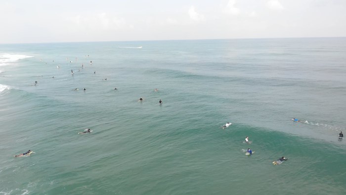 Австралиец Кристофер Джой снимал с дрона пляж Верри к югу от Вуллонгонг, где часто плавают серферы и можно увидеть косяки рыбы.