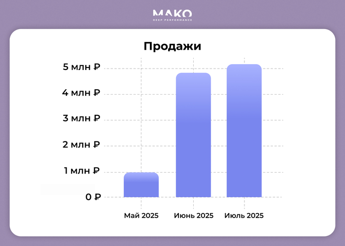 Всего за 2 месяца увеличили продажи в 5 раз.