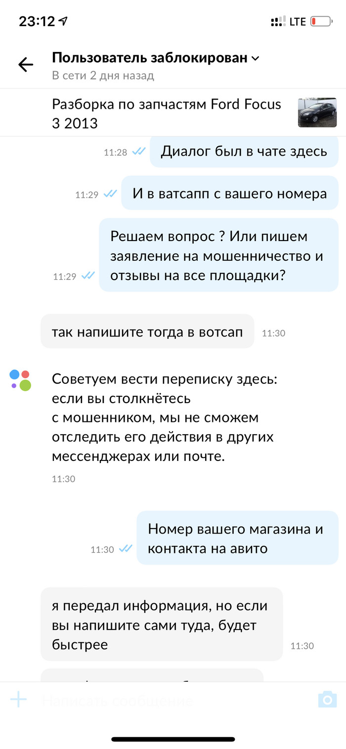 06. 07 когда я уже начал возмущаться и высказывать свое недовольство, мне порекомендовали обратиться к менеджеру у которого я заказывал. То что этот менеджер висит на автс аппе номера, который указан на авито , в чате авито видимо не в курсе.