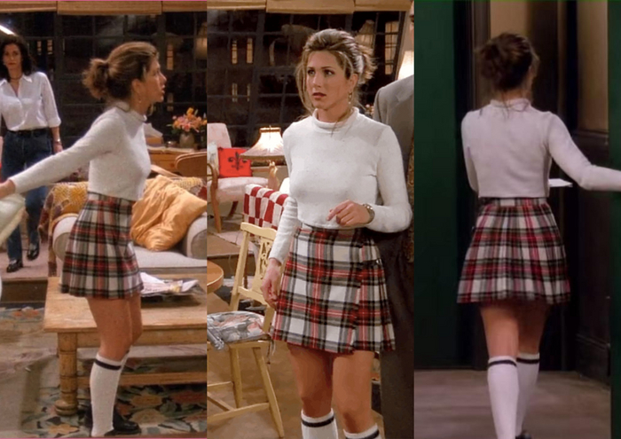 Да, не совсем официантка, но я не смогла удержаться, слишком классный образ. Кому хочется полюбоваться на Дженифер Энистон в клетчатой юбке, листайте карусель: