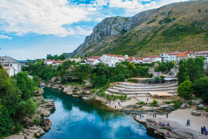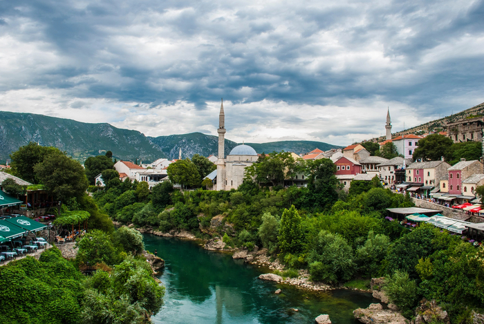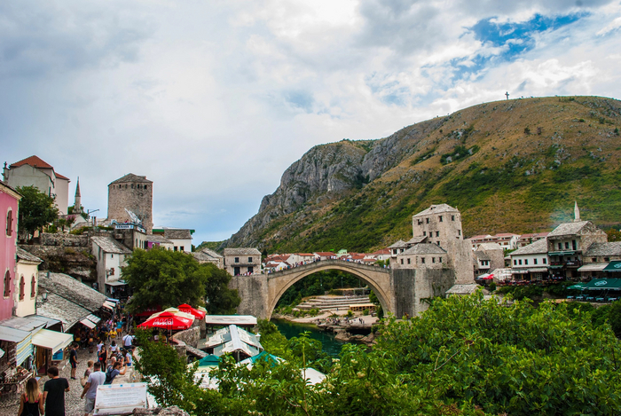 А мы, надо сказать, заказали 2 порции, на двоих. Когда я это увидел, думал не раскошелюсь, но официант назвал цену и у меня упала челюсть второй раз под стол. Я в себя все это не смог запихнуть, не то что жена, пришлось просить взять с собой. Заплатили за это и 2 литра пива 20 евро в сумме с чаевыми. Невероятно вкусное мясо, мягкое, в меру острое. Так что Балканская кухня в моем сердце оставила прияный отпечаток. А виды какие в этом городе (фото мои):