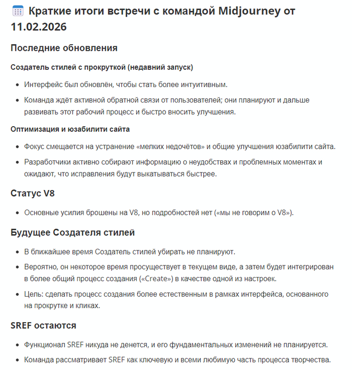 Быстрые новости Midjourney от 10.02.2026