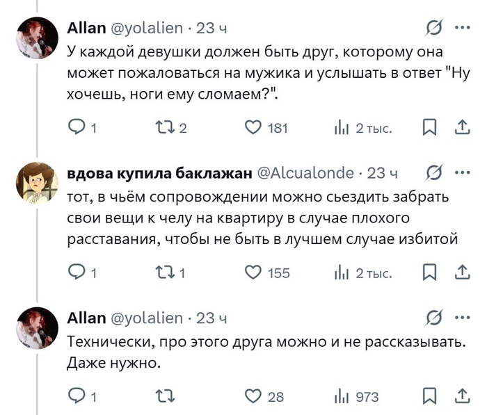 В общем, вопрос к сообществу: это мне так «повезло», или это всемирный заговор? Может, у кого-то есть примеры адекватных друзей мужей? Или это мифические существа, как единороги? Поделитесь своими историями, давайте посмеемся вместе (или поплачем).