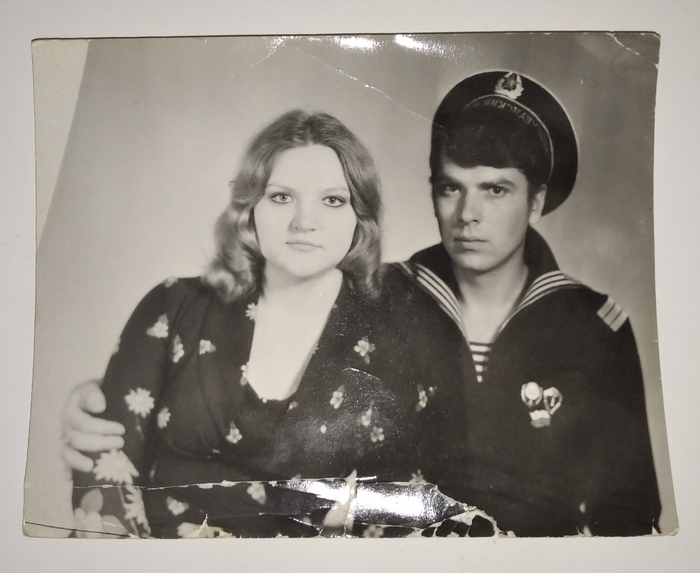 А вот папа пришёл в отпуск из армии.Мама в бабушкином платье. Серьезные оба, осознают всю глубину момента.
