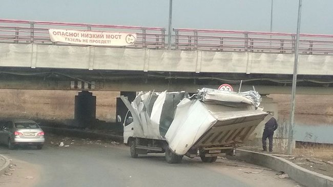 Самым настоящим «конвейером» курьезных ДТП может считаться Софийская улица в Санкт-Петербурге. Именно там расположен так называемый «Мост глупости» — путепровод, под которым регулярно застревают «Газели» и другие грузовики. Высота проезда под мостом составляет всего 2,7 метра, что ниже высоты стандартных грузовиков. Об опасности водителей предупреждают знаки, установленные перед проездом, и плакат с надписью «Опасно! Низкий мост. Газель не пройдет!». Но это не помогает. Регулярно под мостом застревают грузовички, водители которых сносят себе половину кузова. По состоянию на середину апреля 2018 года жертвами «Моста глупости» уже стали 146 автомобилей, и кто знает, сколько их еще может быть.