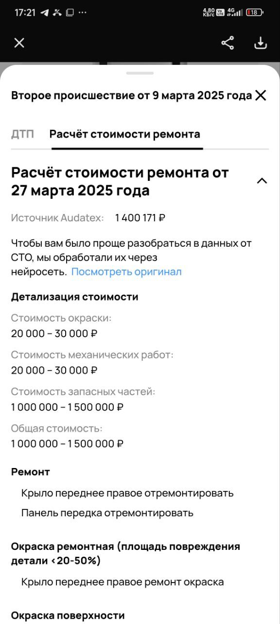 И буквально вчера приходит домой исковое в суд, бла бла бла вы должны 930 тысяч рублей, ведь ремонт обошёлся почти в 1.4 млн!!!