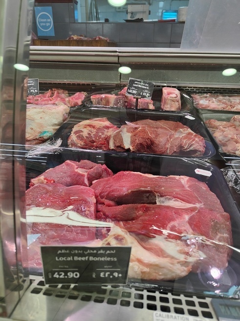 Кило филе говядины 42,9 дирхам, 880 рублей или ~ 11,7 долларов. Свинина, к слову, много где продаётся, но всегда в специальных отделах за ширмой.