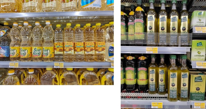Самое недорогое подсолнечное масло за 900 мл. 11,5 дирхама, это 236 рублей или 3,1 доллара, оливковое масло за 500 мл. 19,5 дирхама, это 400 рублей или 5,3 доллара (кликайте на фотку, чтобы увеличить).