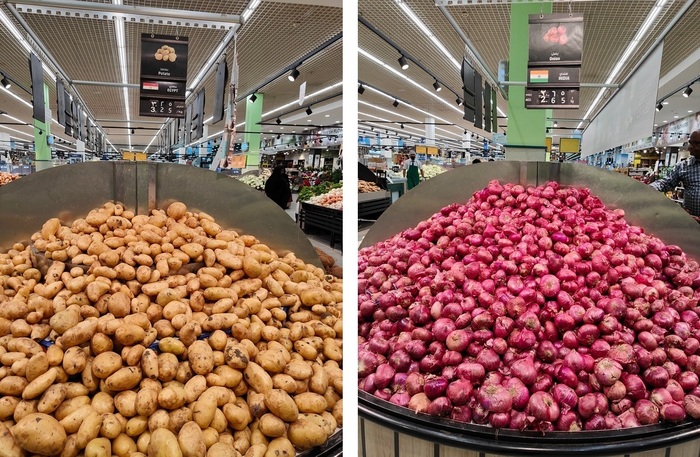 Египетский картофель стоит 3,25 дирхама за килограмм, это около 67 рублей или 0,9 доллара. Стоимость индийского лука 2,65 дирхама за килограмм, ~ 55 рублей или ~ 0,7 доллара.