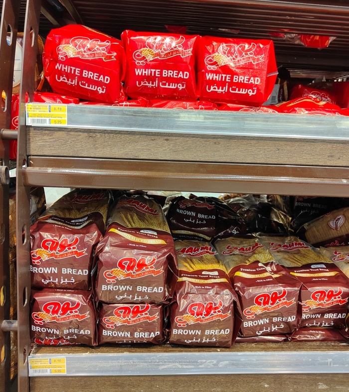 Хлеб из белой муки 5,25 дирхам за буханку ~ 108 рублей, ~ 1,4 доллара. Хлеб из тёмной муки ~ 5,95 дирхама, ~ 122 рубля, ~ 1,62 доллара.