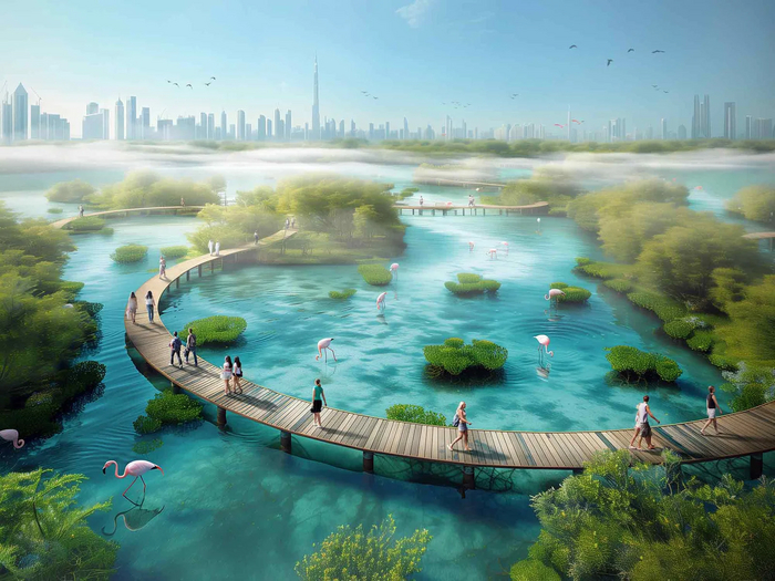 В 2008 году в ОАЭ задумали город, который должен был стать эко-мегаполисом с нулевым выбросом углерода — Масдар-сити.