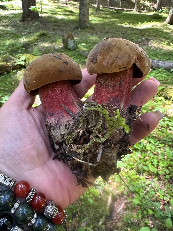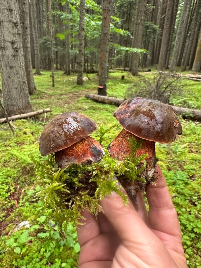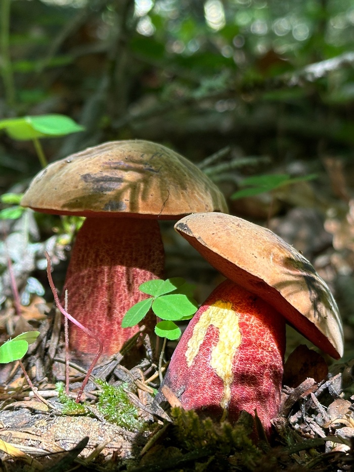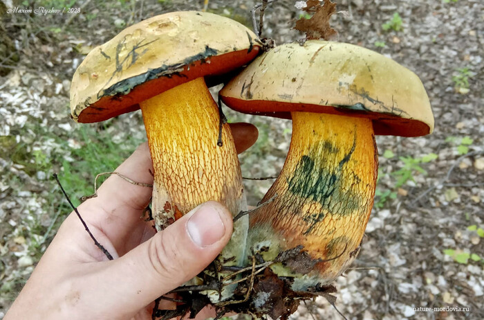 Сравнение среза у дубовика оливково-бурого (Suillellus luridus) и подберезовика обыкновенного (Leccinum scabrum)