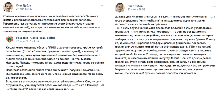 «Еще раз, для понимания ситуации по дальнейшему участию Холмеца в ППМИ после вчерашнего "мини-майдана" пьяных дачников и для понимания законности наших дальнейших действий.