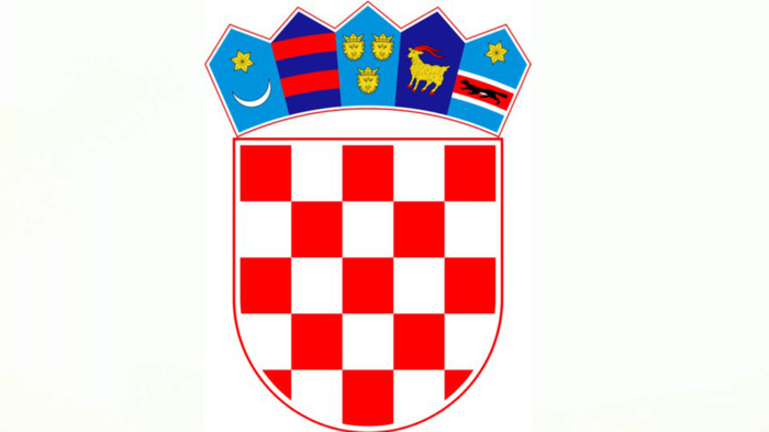 На гербе щит с «шаховницей» сверху украшает стилизованная корона, состоящая из пяти звеньев в виде исторических гербов Иллирии, Республики Дубровник, Истрии, Далмации и Славонии.